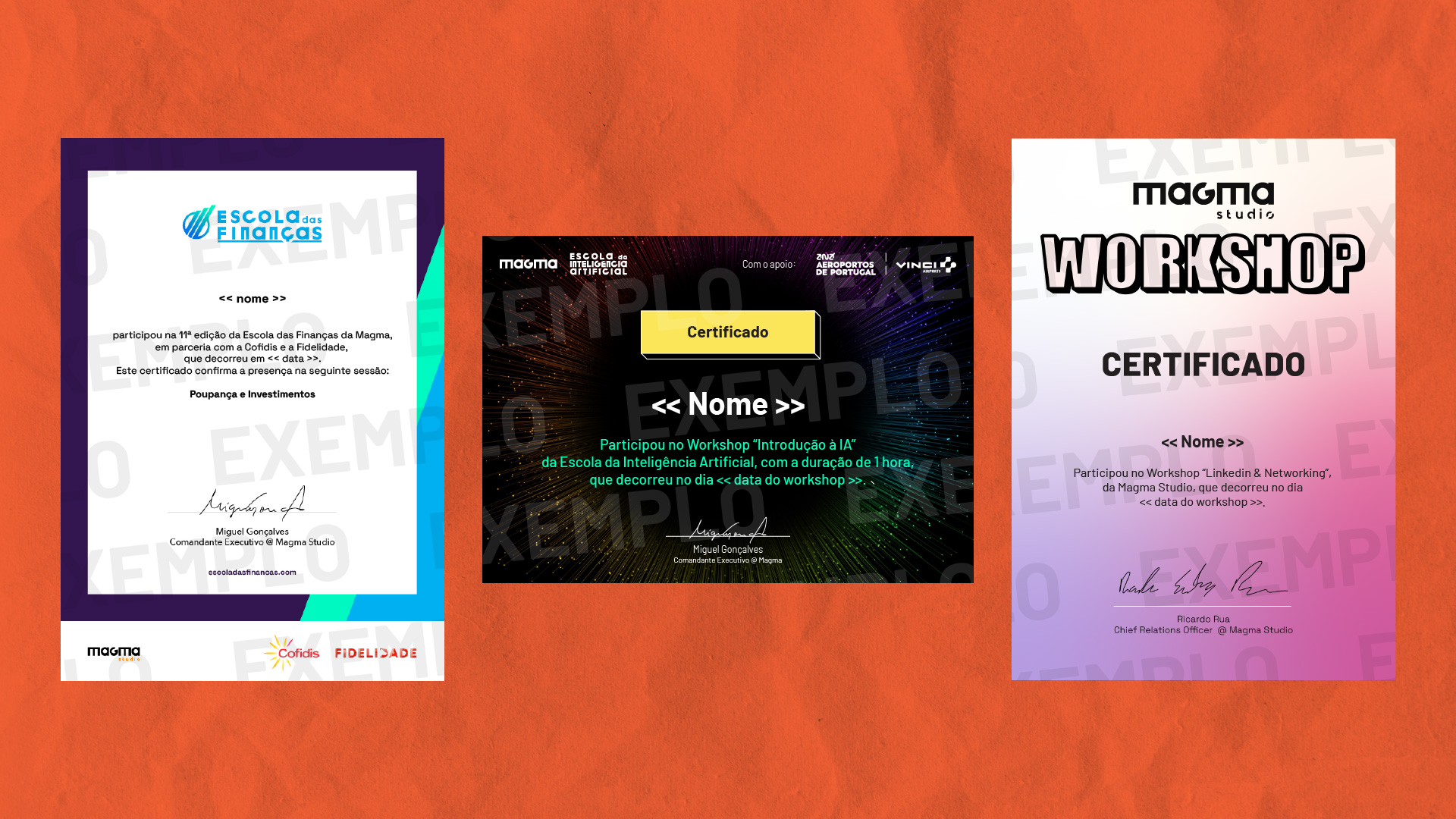 A presença em cada Workshop dá-te o Certificado do Workshop.