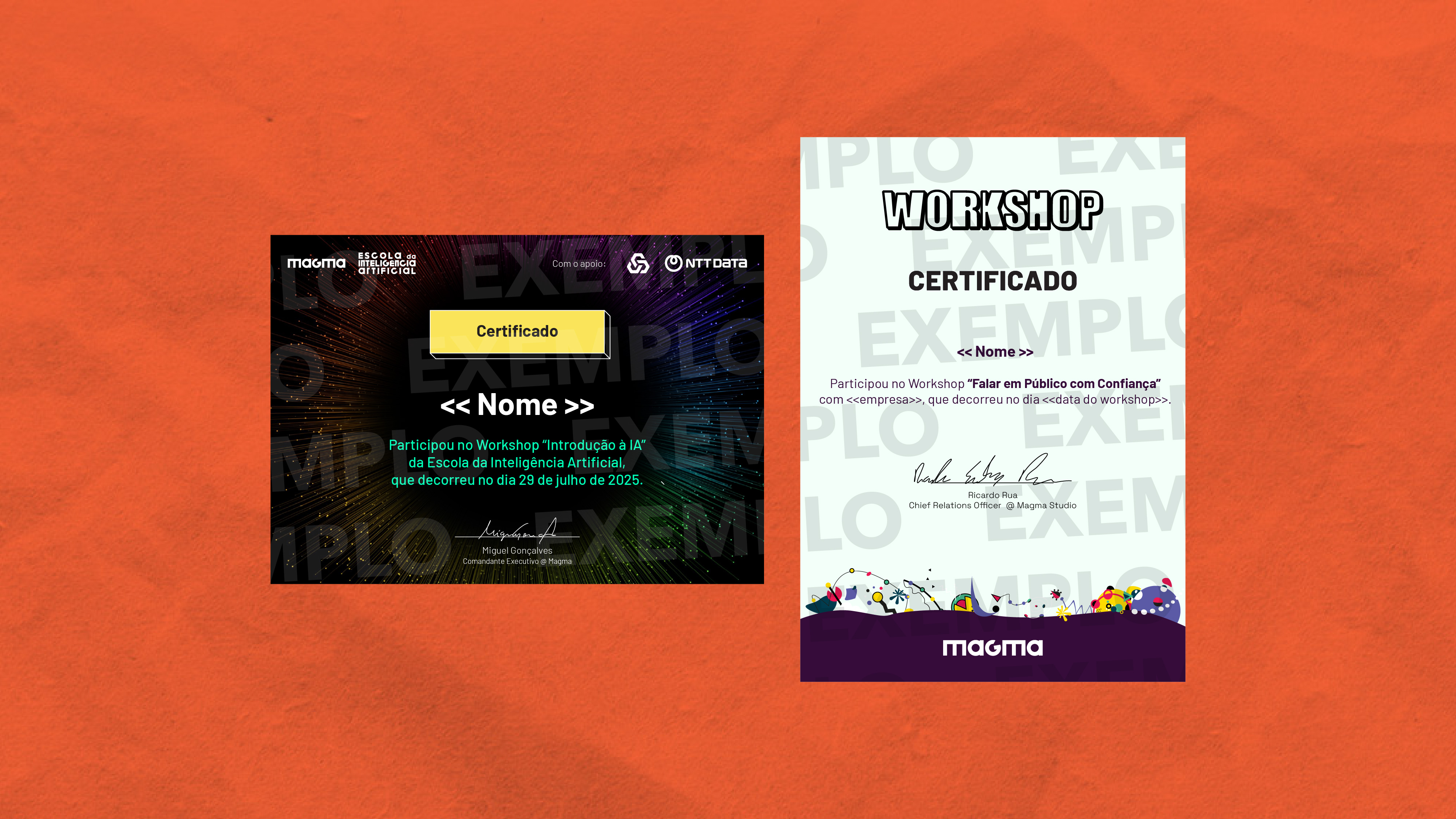 A presença em cada Workshop dá-te o Certificado do Workshop.